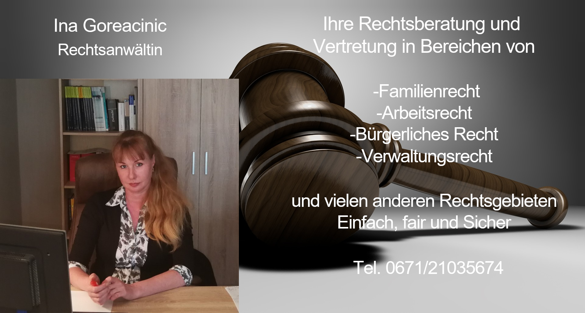 Frau Goreacinic ist sehr kompetent und hilfsbereit. Bei Fragen hatte Sie immer eine Antwort und hat uns mit unserem Problem sehr gut weitergeholfen. Wir konnten telefonisch wie auch persönlich beraten werden. Wir können Sie nur weiterempfehlen. Vielen lieben Dank und weiterhin viel Erfolg!